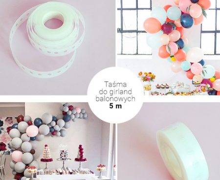 BestselleryNowościPromocjeO nasDługa taśma do girland balonowych. Z taśmą do balonów z łatwością zrobisz dekoracje na ślub i wesele, urodziny i każdą inną uroczystość czy przyjęcie. Twórz piękne girlandy, łuki balonowe i inne dekoracje. Z łatwością możesz łączyć ze sobą taśmy, jeśli potrzebujesz dłuższej dekoracji.