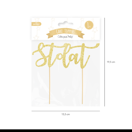 Topper na tort, urodziny, Sto lat złoty, 13x14 cm