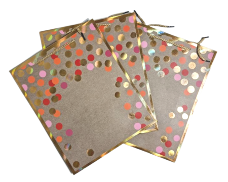 BestselleryNowościPromocjeO nasElegancka torebka prezentowa w odcieniach brązu/beżu w kolorowe, błyszczące grochy.