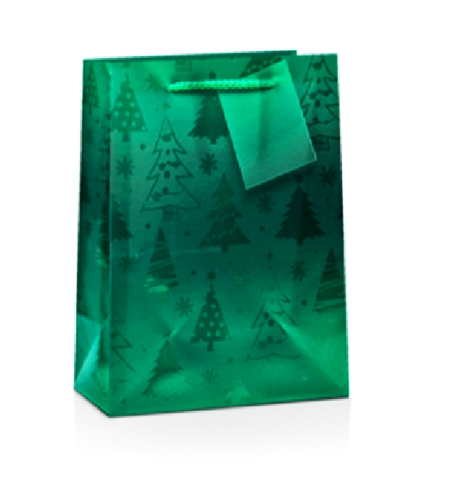 Torebka Prezentowa Boże Narodzenie 32x26cm, metalizowana, zielona, choinki