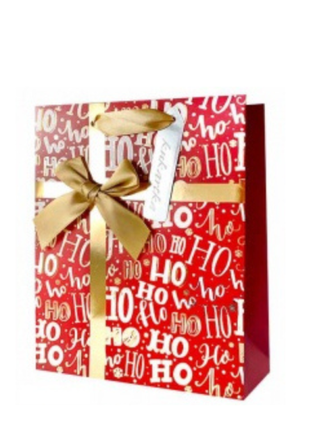 Torebka Prezentowa Boże Narodzenie, 46x33, DUŻA, czerwona, HO HO HO