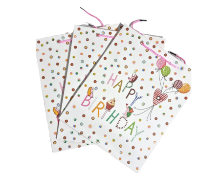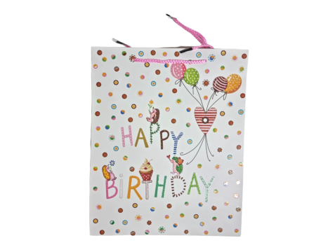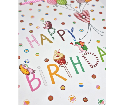 • Wzór: happy birthday, kolory, jeże, baloniki