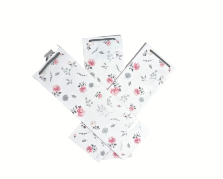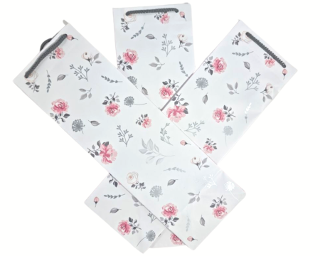 Torebka Prezentowa na butelkę, alkohol, biała, kwiaty