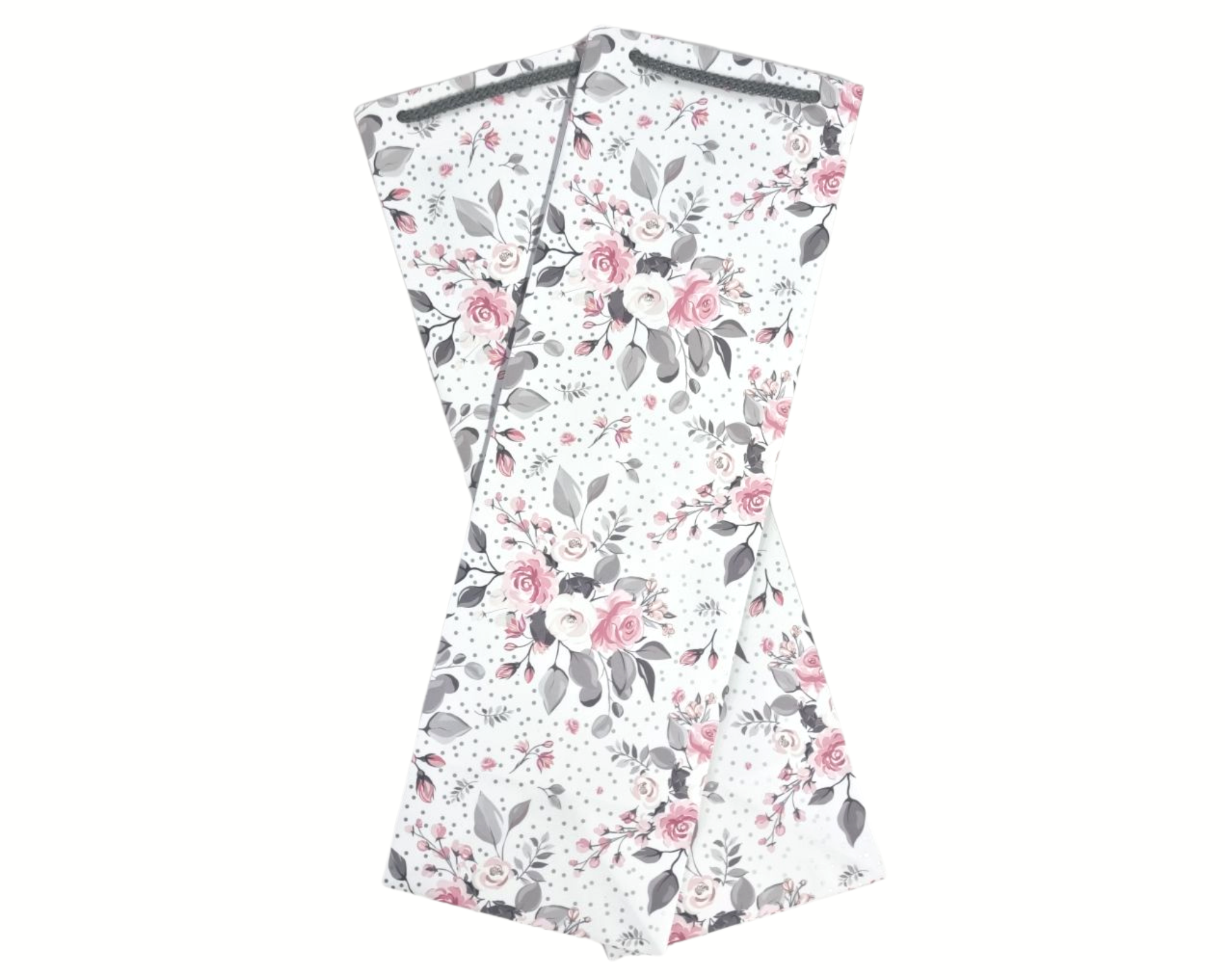 Torebka Prezentowa na butelkę, alkohol, biała, kwiaty, srebrne grochy