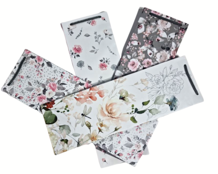 BestselleryNowościPromocjeO nasElegancka torebka prezentowa w szarym kolorze z pięknym, kwiecistym zdobieniem.