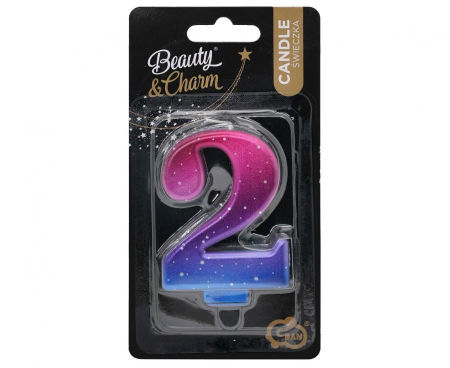Świeczka Cyfra 2, B&C Night Sky, metaliczna, 8 cm