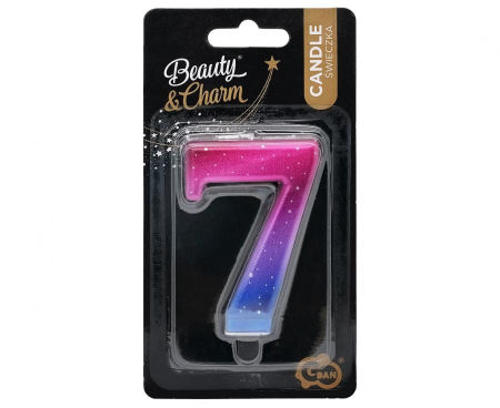 Świeczka B&C cyferka 7, Night Sky, metaliczna, 8 cm