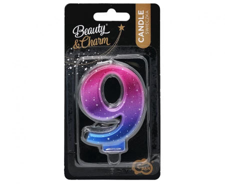 Świeczka B&C cyferka 9, Night Sky, metaliczna, 8 cm