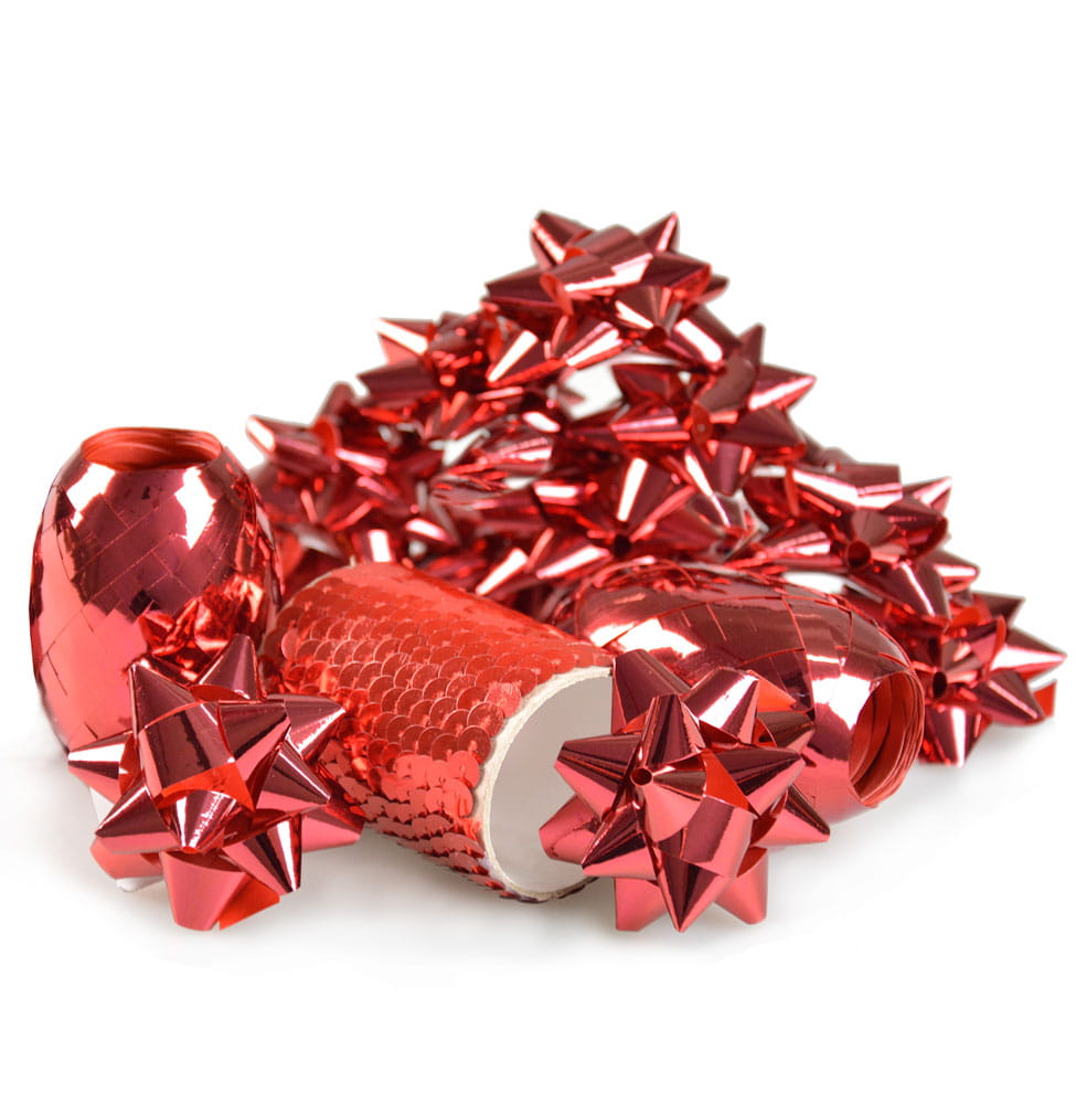 Zestaw ozdobnych wstążek i kokardek idealnych do pakowania prezentów.